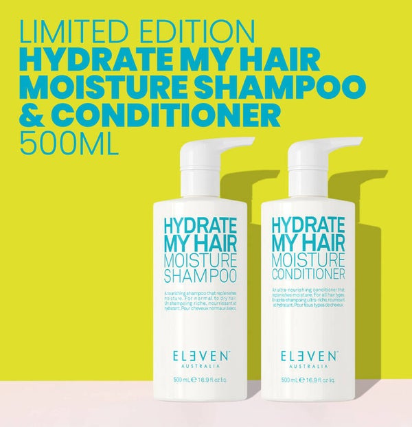 Dehydratatie is de grootste oorzaak van broos haar. HYDRATE MY HAIR MOISTURE CONDITIONER (500 ML) is een kleurveilige, ultravoedende crèmespoeling. Avocado-olie, gehydrolyseerde tarweproteïnen en gehydrolyseerd tarwezetmeel genezen en beschermen het haar tegen droogte.
